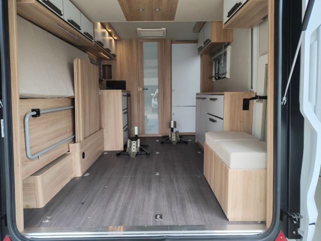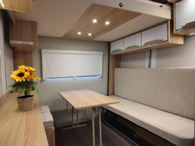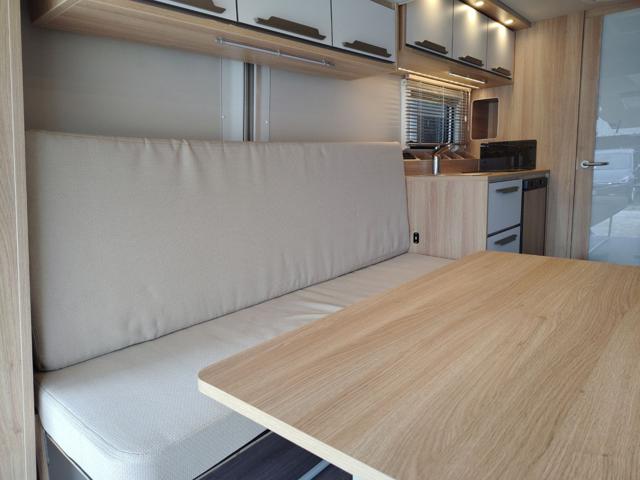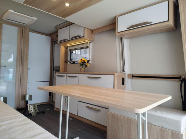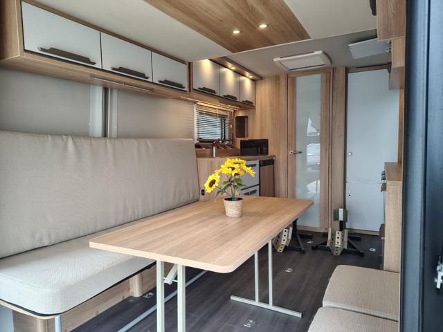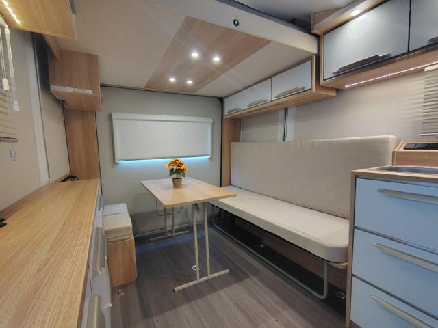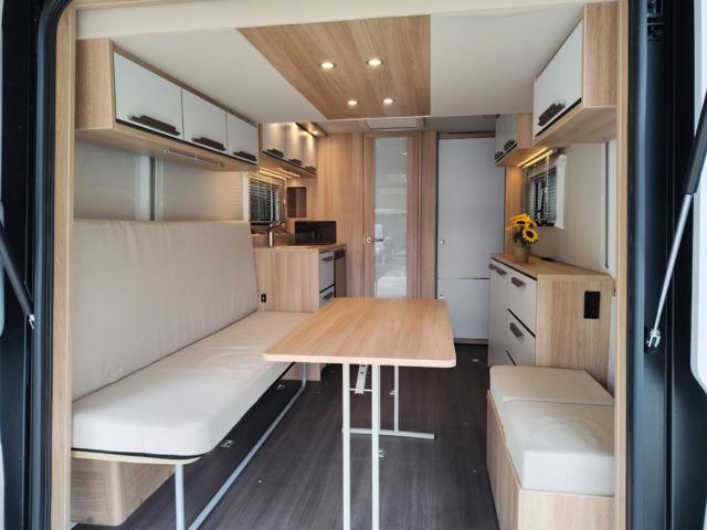Knaus descrive il Deseo 400 TR prima di tutto come uno spazio abitativo accogliente, dotato di tutti i comfort che ci si aspetta da tutti i camper arredati: una cucina completa, un bagno, una dinette/letto convertibile e quattro posti letto quando si aggiunge il letto rialzato sollevabile. Una delle caratteristiche migliori del Knaus Deseo è la sua rapida conversione in modalità stiva. Ora puoi portare la tua moto e fare bella figura davanti a tutti. L'intero pannello posteriore si solleva per creare un'unica grande porta, così puoi aprirla sulla spiaggia e ammirare un panorama già pronto, per gentile concessione della natura.