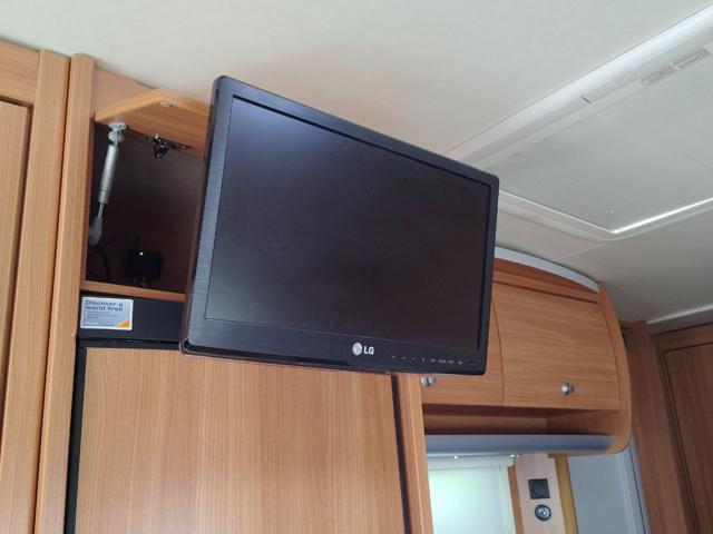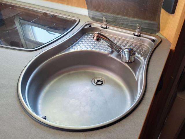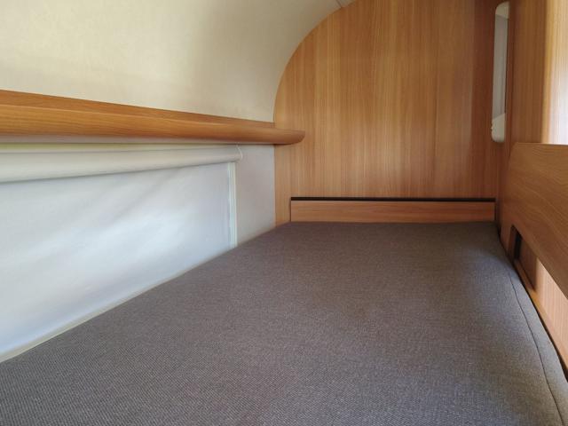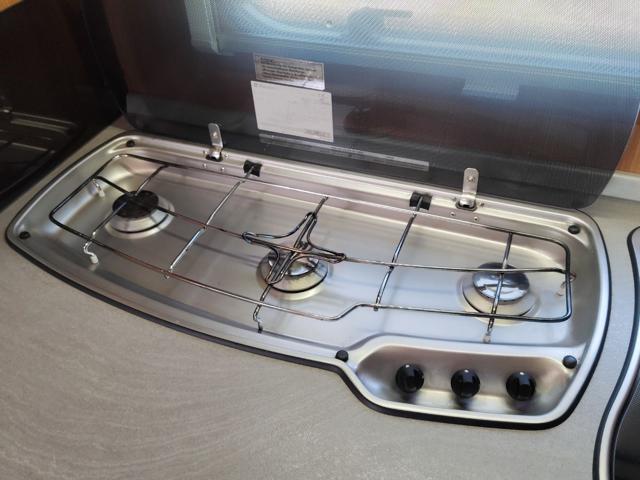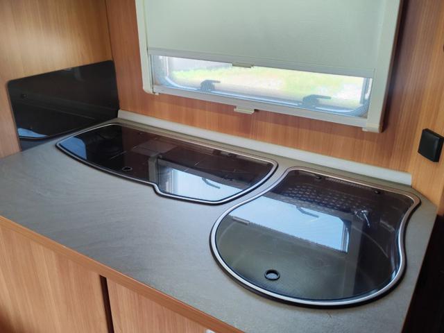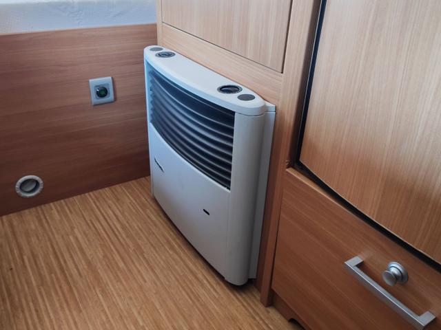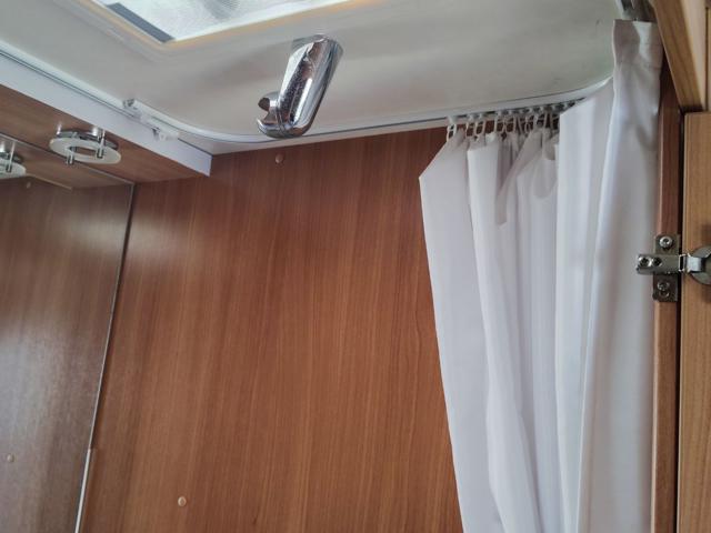 Struttura: Pareti in alluminio con finitura "buccia d'arancia" (hammer tone) e tetto con spessore di 31 mm per un isolamento ottimale, Telaio AL-KO Euro con assale a delta e stabilizzatore AKS di serie, progettato per ridurre il rischio di sbandamento, Arredamento in design con illuminazione a 12V e prese multiple a 230V., Serbatoio acqua chiara da 45 litri, stufa Truma S 3004 con termoventilazione e boiler elettrico Truma Therme per l'acqua calda.
